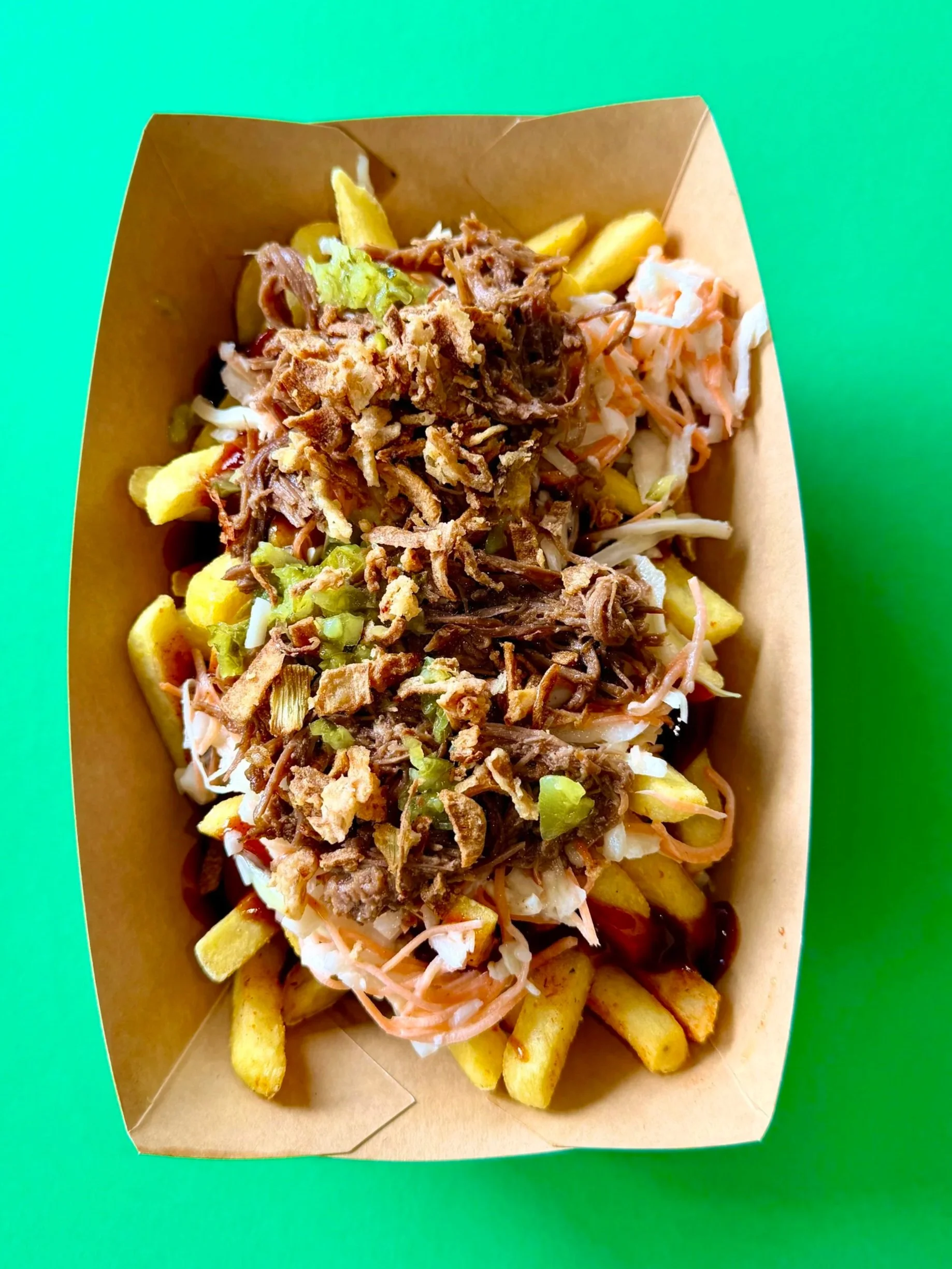 Knusprige Pommes frites, grosszügig belegt mit herzhaften Toppings: geschmolzener Käse, würzige Saucen, frische Kräuter und je nach Variante zum Beispiel Bacon, Pulled Pork oder Jalapeños. Loaded Fries sind der perfekte Street-Food-Genuss – warm, sättigend und voller Geschmack. Ideal zum Teilen oder einfach ganz für dich allein